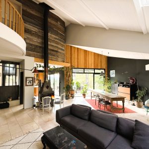 - Pièce de vie de 54 m² avec 3 baies vitrées et 2 fenêtres de toit pour une luminosité maximale